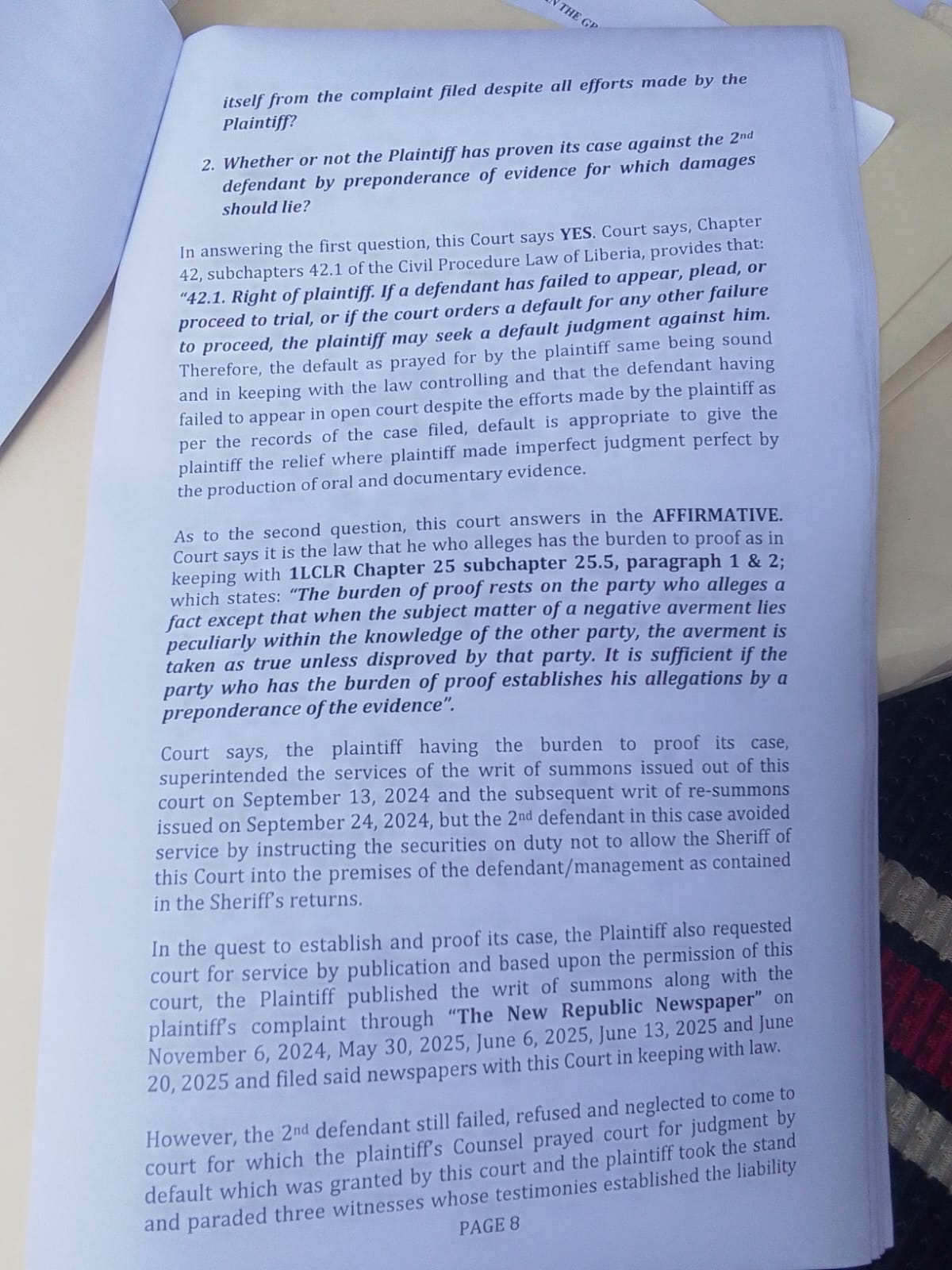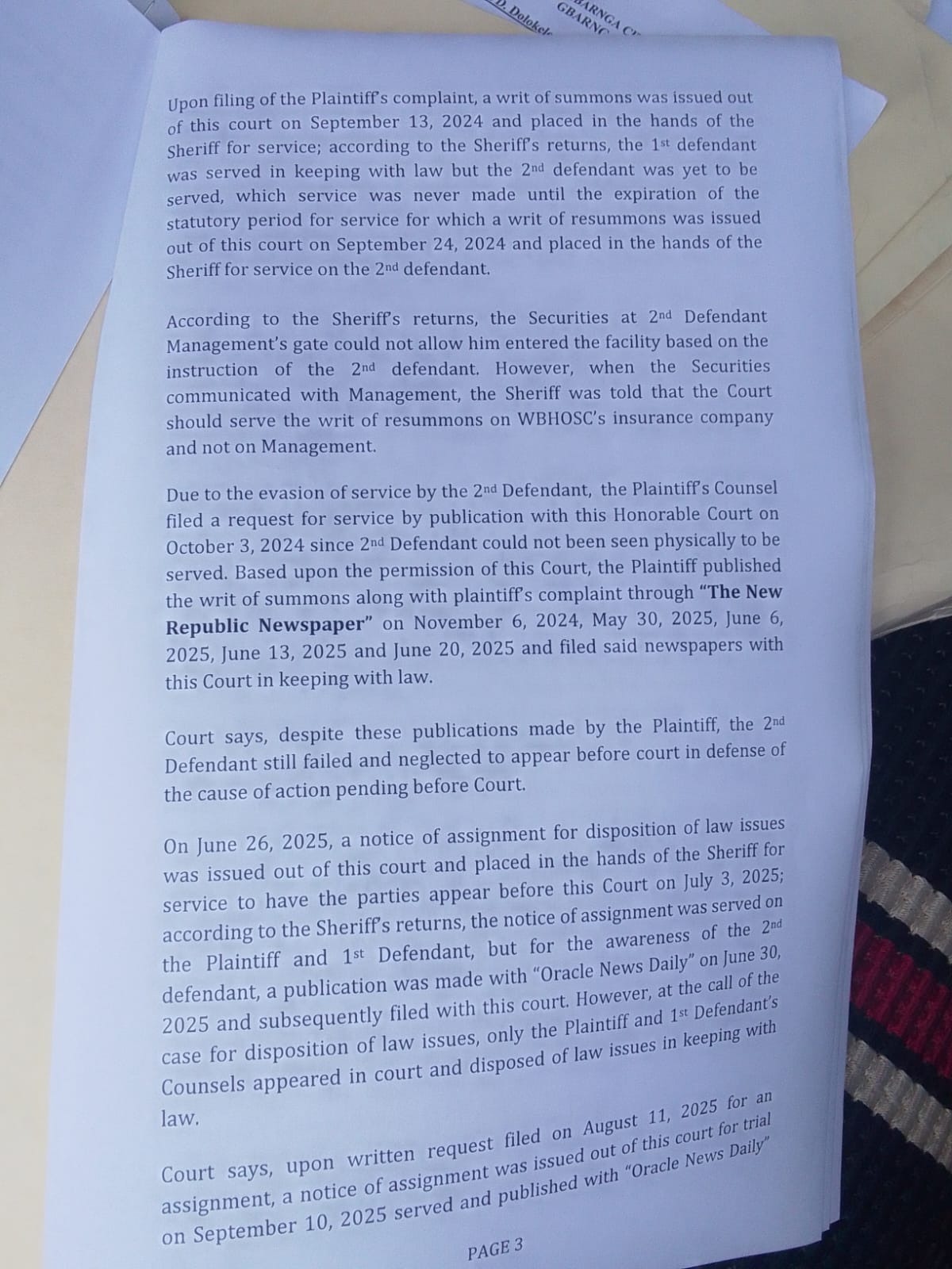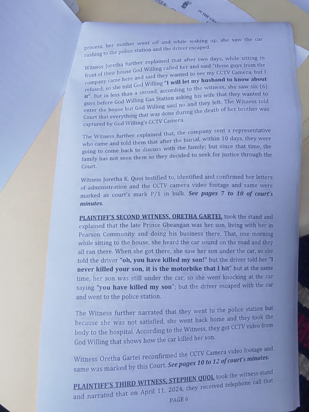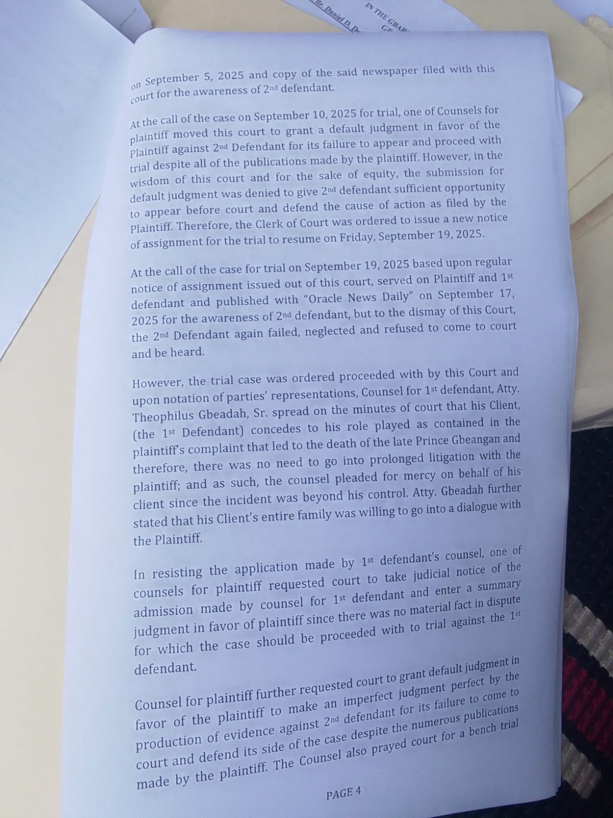 This covers, One Million five hundred thousand in general damages, One hundred and ninety-five thousand Liberian dollars in special damages and five Hundred Thousand United States Dollars in consequential damages to the family of the late Prince Gbeangan who was killed by a vehicle belonging to WBHOSC in Ganta, Nimba County.