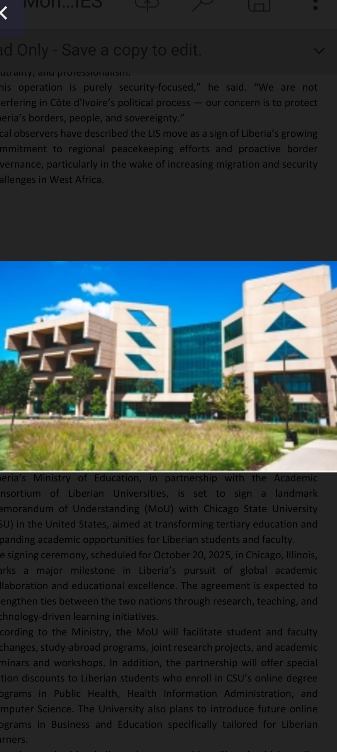The signing ceremony, scheduled for October 20, 2025, in Chicago, Illinois, marks a major milestone in Liberia’s pursuit of global academic collaboration and educational excellence. The agreement is expected to strengthen ties between the two nations through research, teaching, and technology-driven learning initiatives.