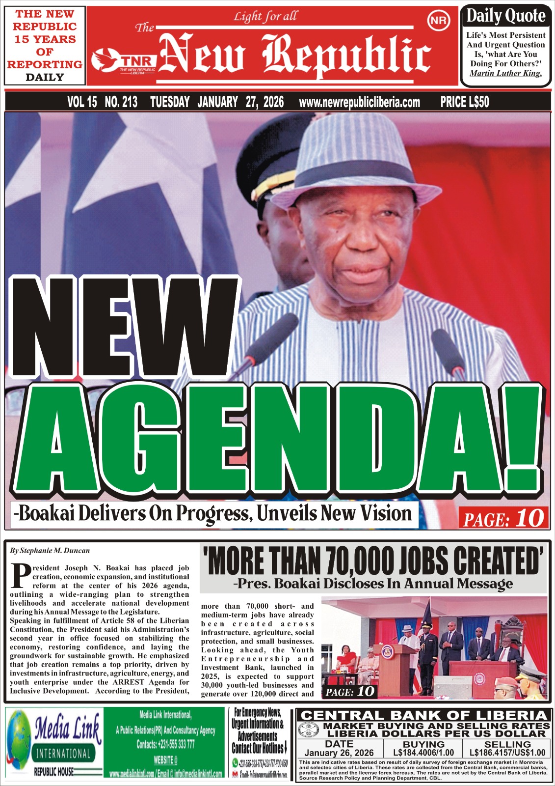 MONROVIA-President Joseph Boakai’s third Annual Message to the National Legislature was not short of reflections on the progress made and challenges endured during the year under review as well as bold new agenda and vision aimed at reshaping progressive national development agenda.