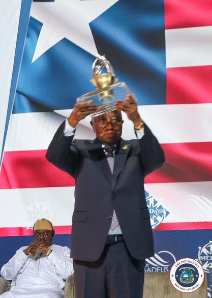 An Executive Mansion release noted that the award, one of the Forum’s highest distinctions, recognized President Boakai’s leadership, visionary governance, and his advocacy for Africa’s advancement in global affairs.